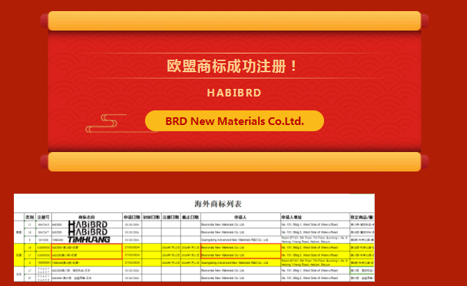 HABIBRD successfully completed the registration of Class 17 and Class 19 trademarks in the EU! Covering refractory tile and cement products; Non-metal building materials other than building metals; Glass and non-metallic materials for construction. Refractory brick and cement products; Non-metal building materials other than building metals; Glass and non-metallic materials for construction; Products of stone, gypsum, cement, asbestos, mica and similar materials; Refractory products and a wide range of fields. This important milestone not only highlights HABIBRD's deep heritage in the field of energy-saving new materials, but also marks our steady progress in the international market.